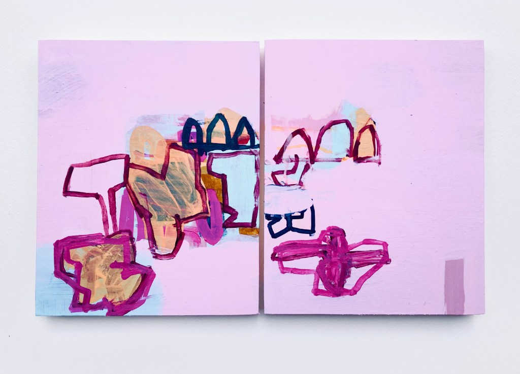 A dreich morning gives way to a sharp cold sun in the afternoon. Walking across the stubbled field icy splinters of nippy wind smart and I bury my head deep into the collar of my coat. Along the field edge I spot a shard of blue and white pottery sticking out of the mud. Is there a field anywhere that doesn’t have bits of once used and cherished bowl, platter or teacup ? Rubbing the smoothed glazed surface brings to mind the other finds I have stowed away in various coat pockets. From acorns to pebbles, feathers to more blue and white pottery, they lurk in their darkness, my own hidden curation of walking. I turn my back to the field and look at the edges of the wood, the verticals of sun and shadow, watching the light recede into its own interior . A hasty drawing to think about this , an act of translation, from the original into a loose approximation of understanding. I walk back across the field scanning the earth this way and that, alert for the next piece for the collection.