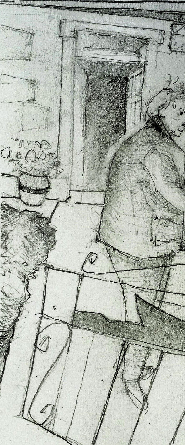 As I walk down the road cars hurtle past. Wind picking up, warm and giddy. I veer off into a small woodland of beech and sycamore and ferns.Leaning against a tree to draw I feel a thud, and another . Looking up, the treetops are swaying into each other. It surprises me to feel the tremor descend the trunk of the tree and down through my body to my feet. I draw a beech and let my eye follow the shape of the branches. My hand knows what to do.