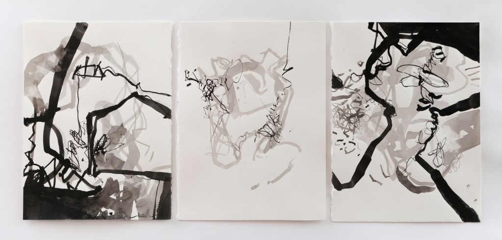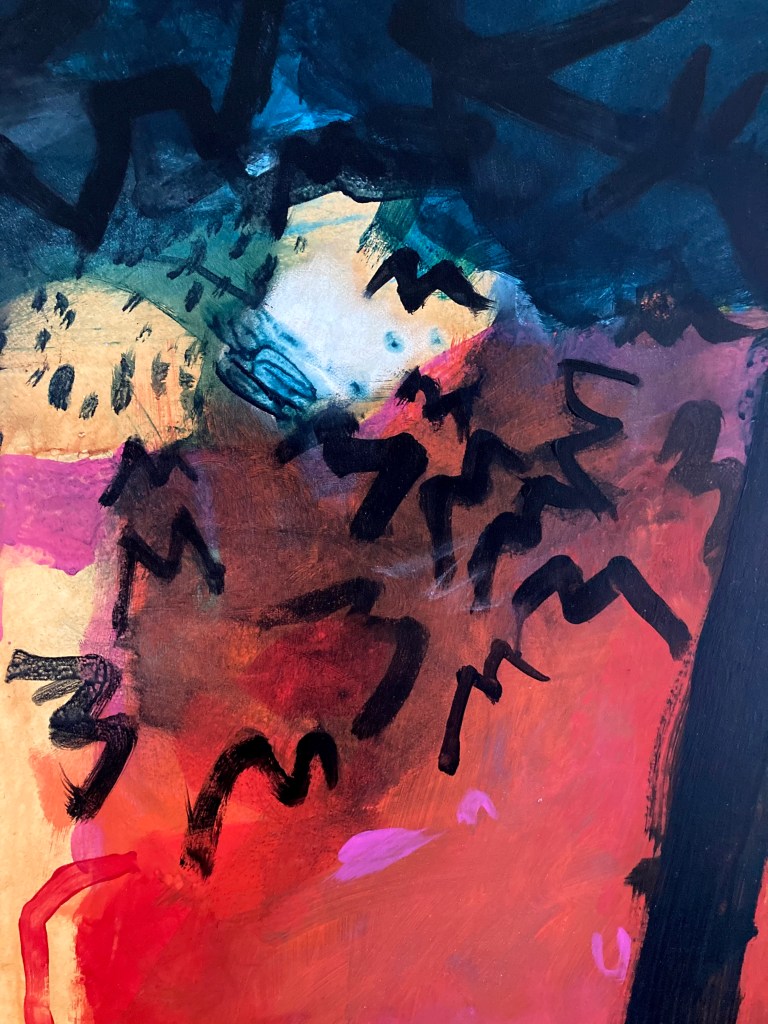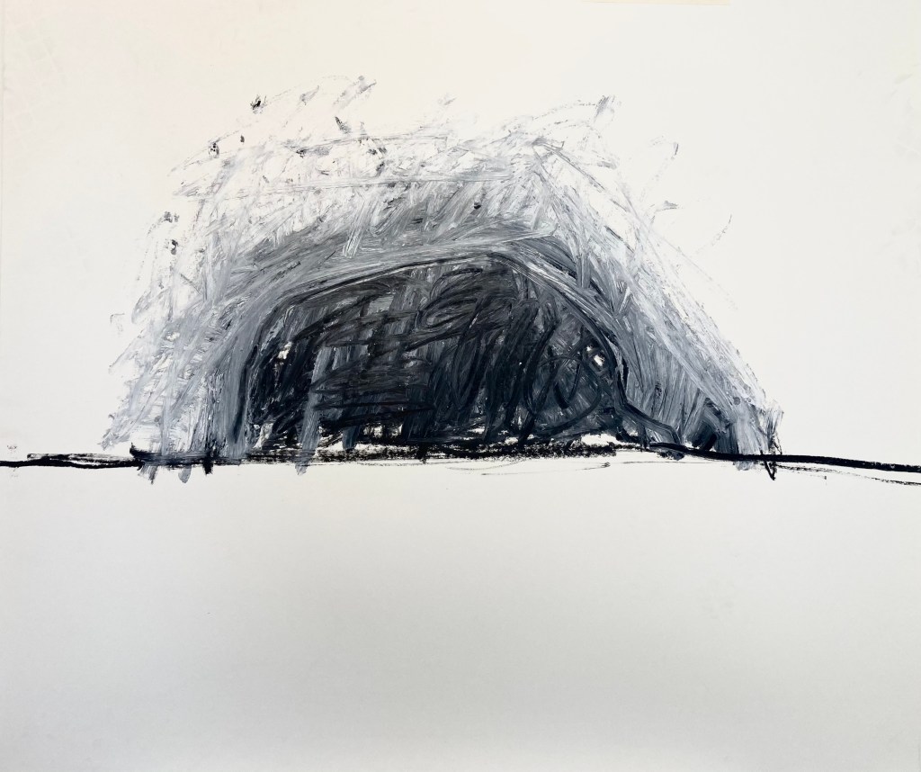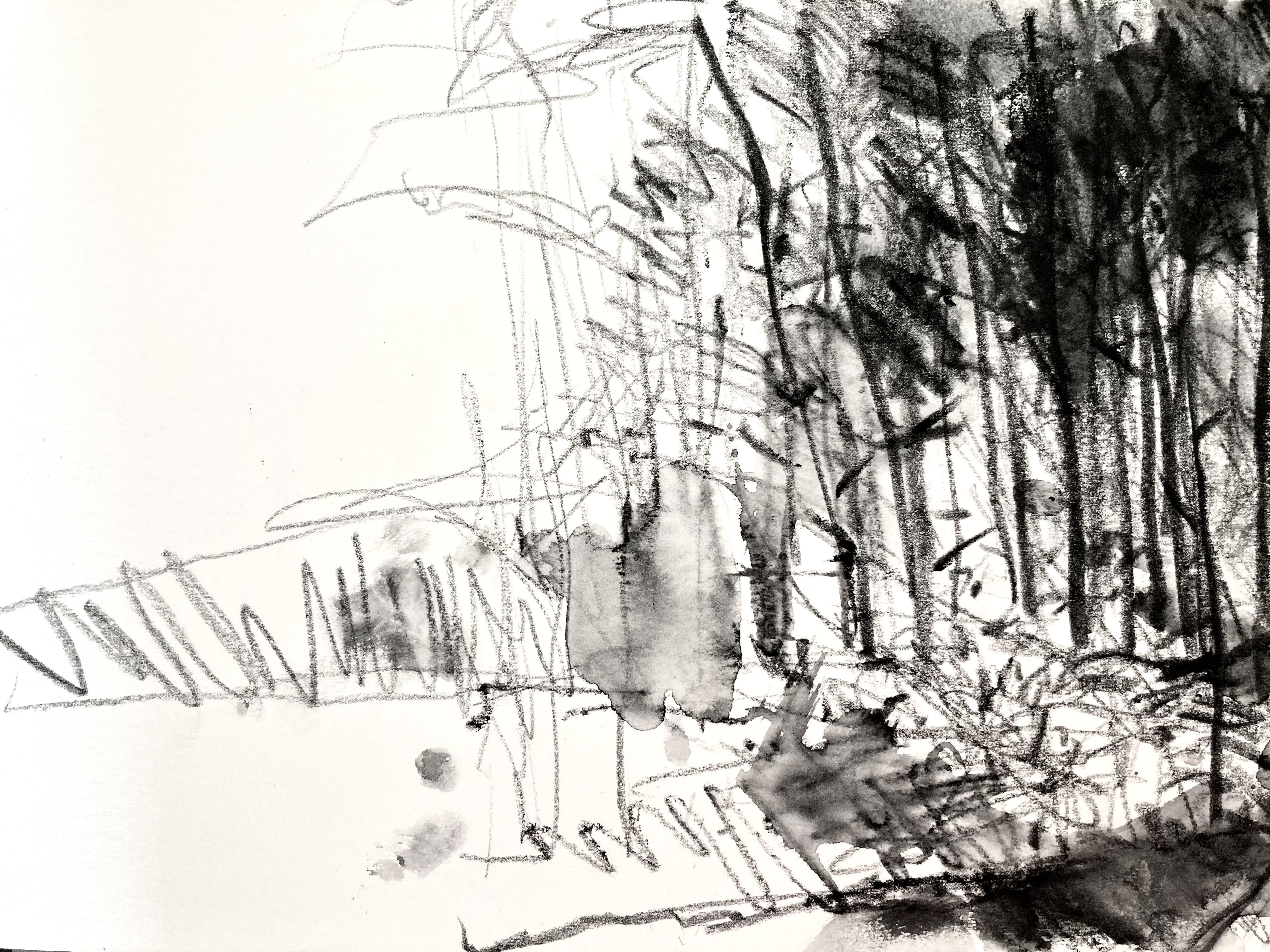 Out on the Moor again. Majestic. Showers in the west threaten but here on the edge of the loch a bowl of blue sky above. Everything is bleached, winter worn yet the bilberry is greening it’s way through. The lone rowan tree on my left still keeping vigil over this lonely landscape. I search and find another birds egg speckled pebble and putting it my pocket walk back to the forest . Sun, sweet violets, dog lichen, the soft acoustics of moss. By the side of a water filled drainage ditch I lie down and pick up a handful of squirming, tickling tadpoles delighting as they run through my fingers. For a moment I am eight again and all is well with the world.