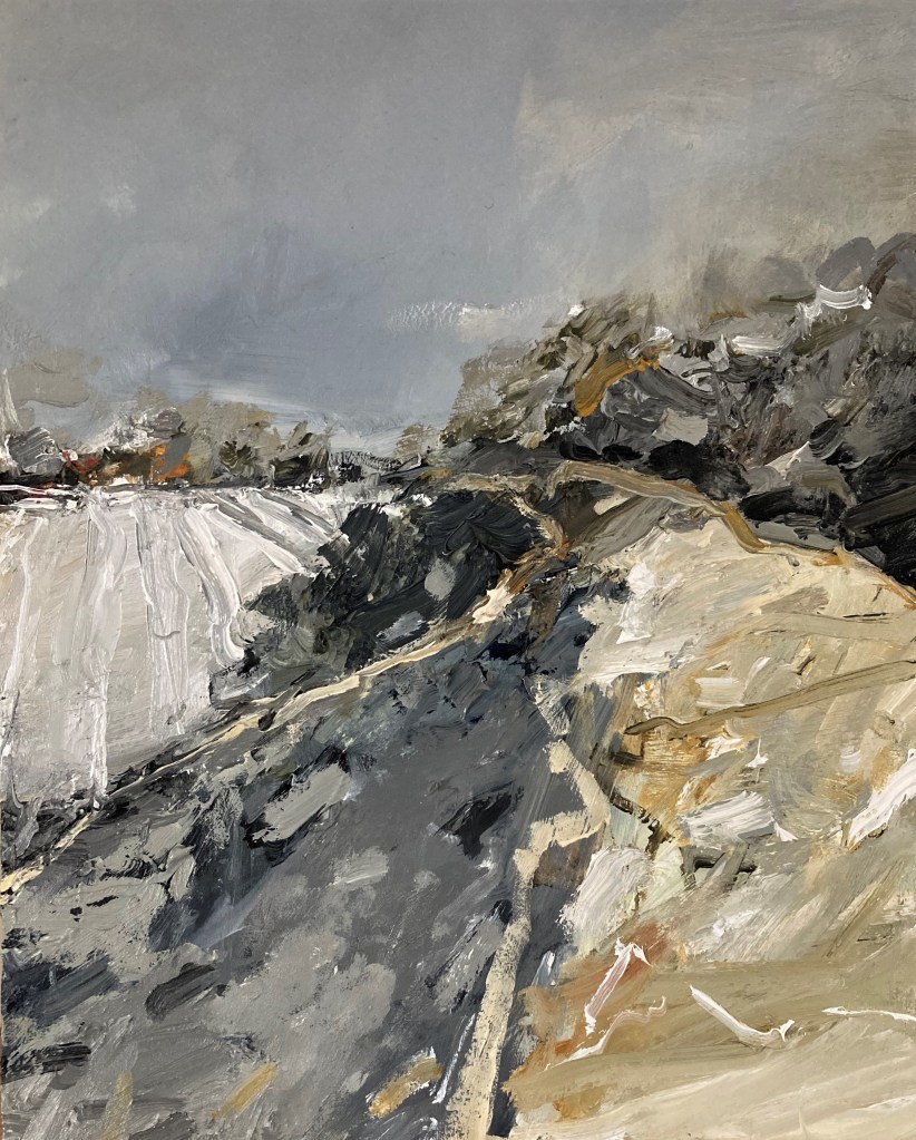 Posted on June 16, 2021October 26, 2022So damn blue. Mixed media on panel – 25 x 20 cm. This is a drawing made in response to a poem from Rebecca Sharp called ‘Passerine’ which was made after our last visit to Drumcarrow Craig as we walked and drew and talked and looked and listened. The final line of her poem is – So damn blue .