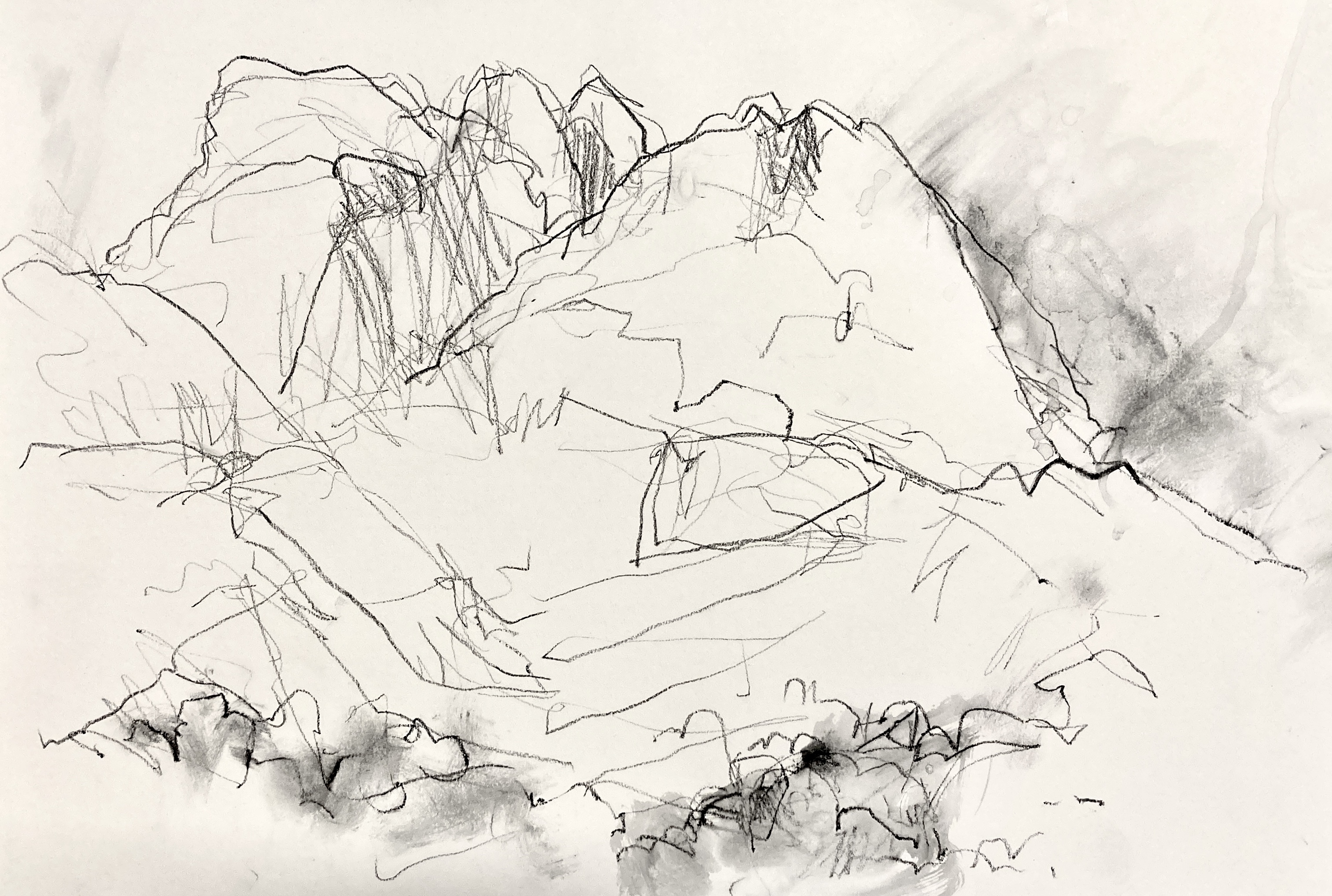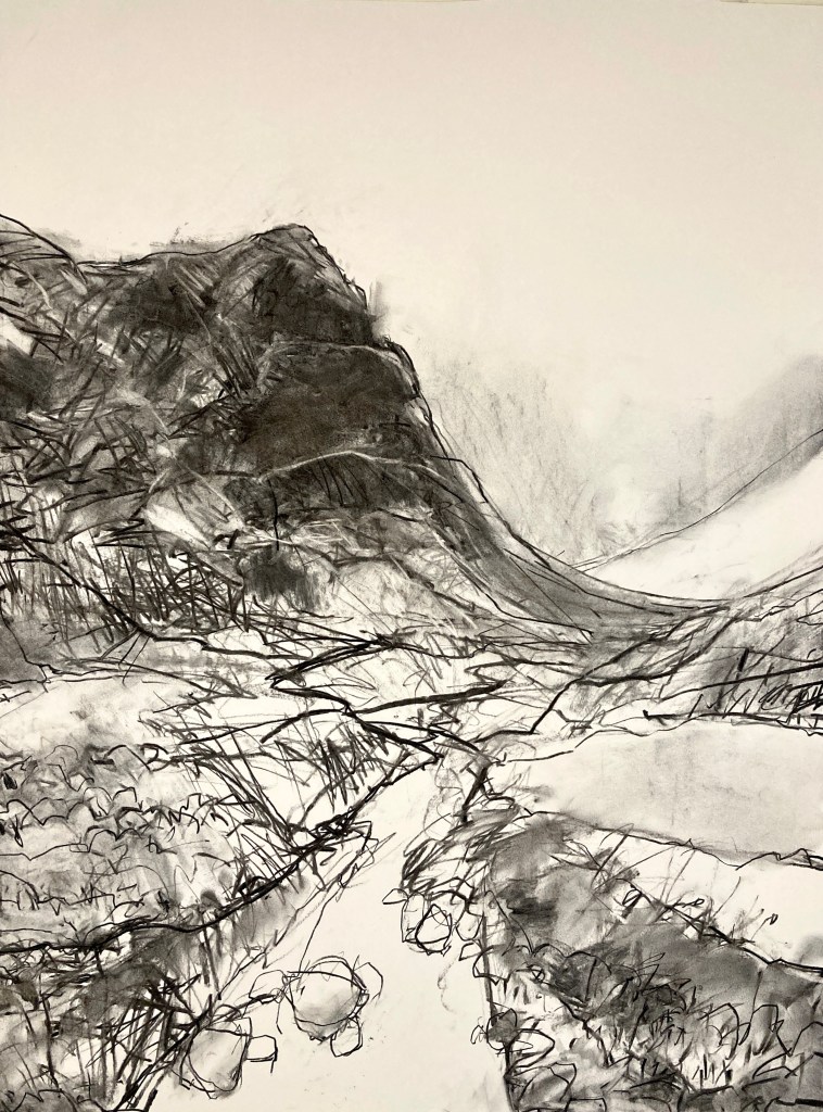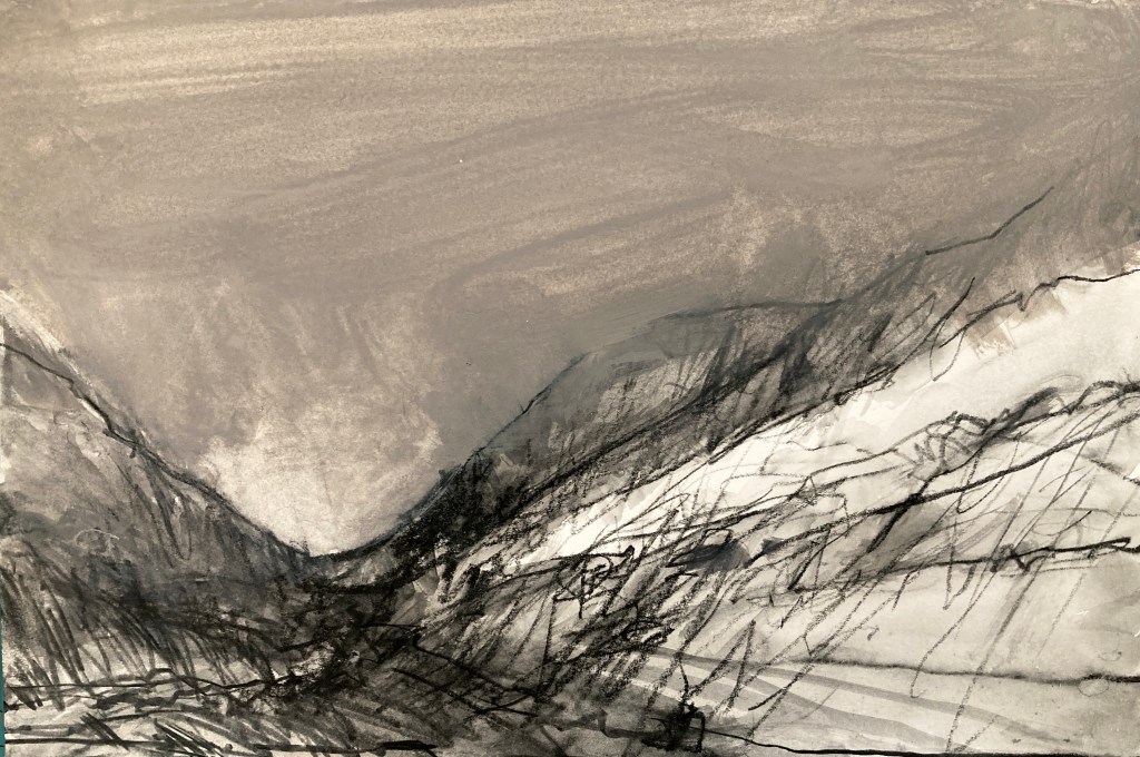 A damp mist shutters the gap between the hills, stamping down hard against the sodden bog. Whole cliffs of rock disappear, a simple sleight of hand. Lost. Into the silence a pithy, pinched wind comes, trembling the heather, breathing sun across the western flank pulling the hill back from the brink.