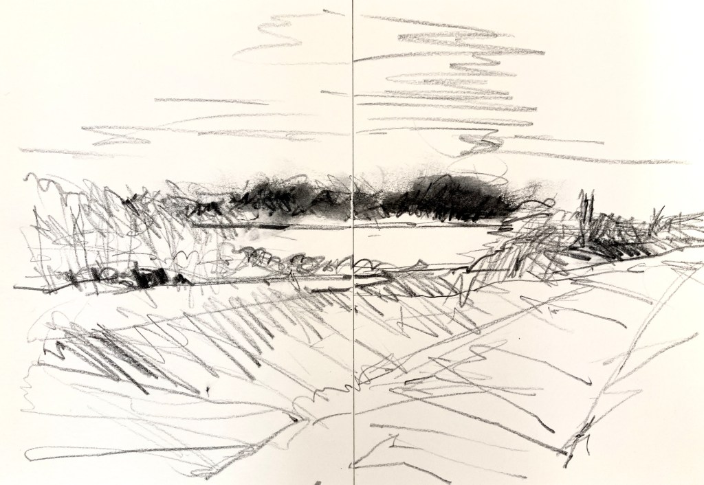 Daffodils flowering in the verge. A thrush sings for me from a hawthorn, it would fill anyone’s heart. The sky is full of birdsong this morning and a woodpecker thrums in the wood. I meet a walker and we stop for a chat, share stories of ourselves. I am told to pop in any time I am passing. Swans on the loch, a ploughed field. The softest blue sky and a warm sun.