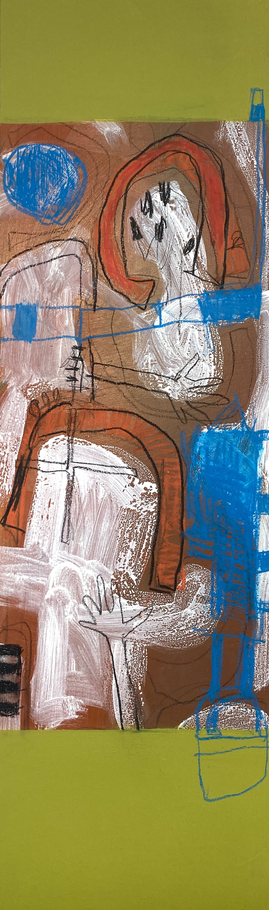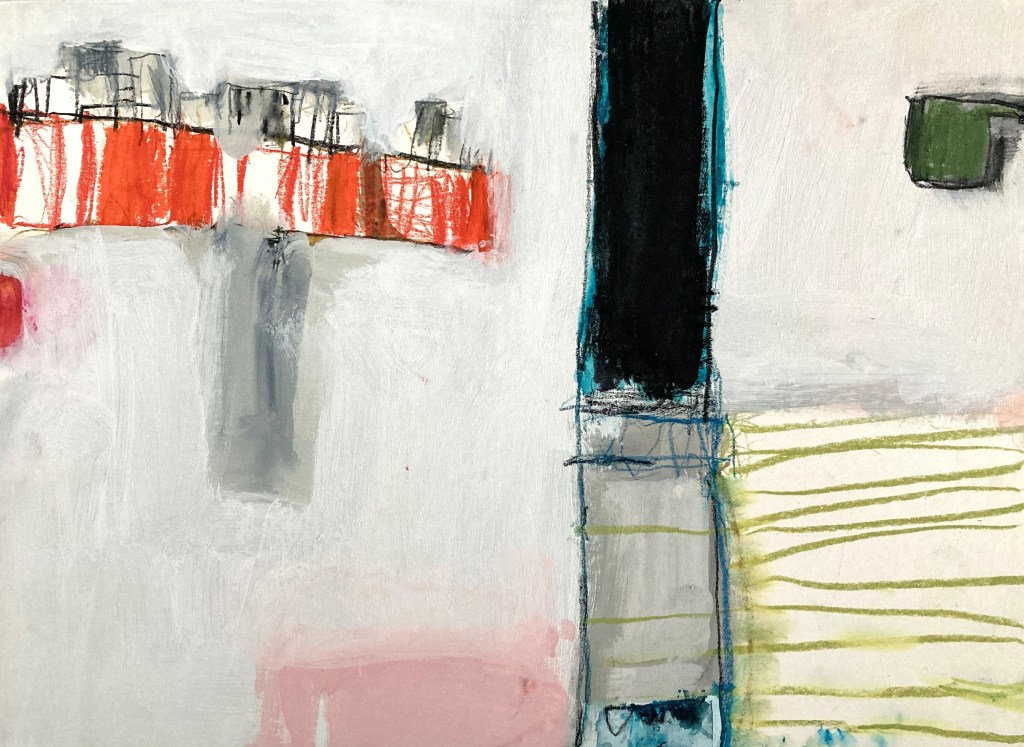 In the fields earth mounded in rows, neatly parted, comb down to the sea. Over the stile all is green with spring unburrowing now winter has retreated. Green and green and pink where rock shoulders through, all elbows and shins and ankle boned. And here a giant stone arch, we walk under an armpit. Gorse perfume drifts up to the song of the skylark, falling back down as silver stars for gannets in an upside down sky.
