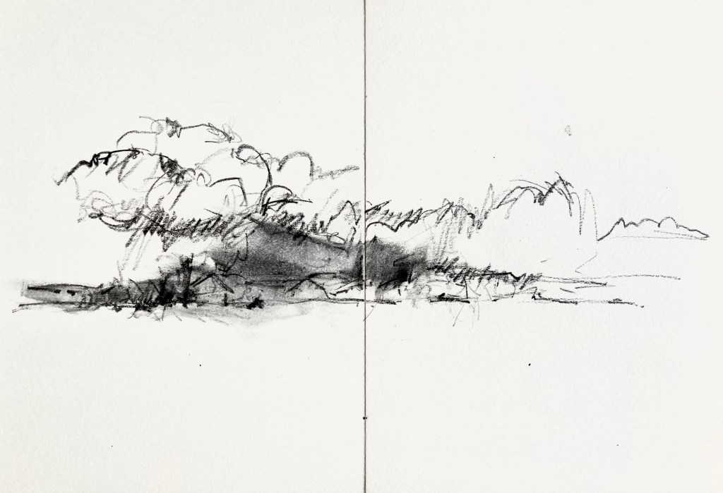 I am back here to see the sky. Clouds sweep in on a westerley breeze, curl, swell, froth, spill over, to the drowsy cow parsley in the hedgerows. A Ukranian flag flutters above three men standing by their sheds watching the world where the river meets the sea. Retired, off- shore workers, seen the world and then some, but home is Ferryden, always. Not Montrose, no, that causes offence. A chuckle. Beyond , the fields rise up , everything green and stretching. Ships in the harbour. Sixty to eighty jobs promised. They’ve said that before. Skylark and lapwing song mark the edge of this land. And then sky, just sky. Always.