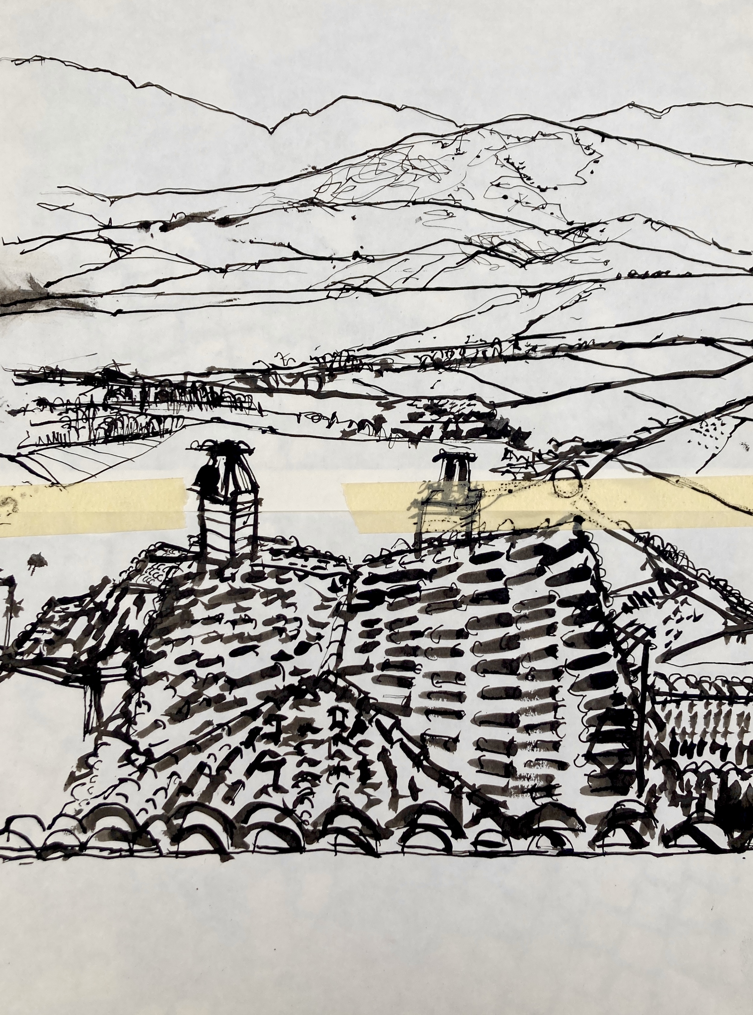 Sketch from a recent visit to Umbria, Itlay. This is the view across the valley.